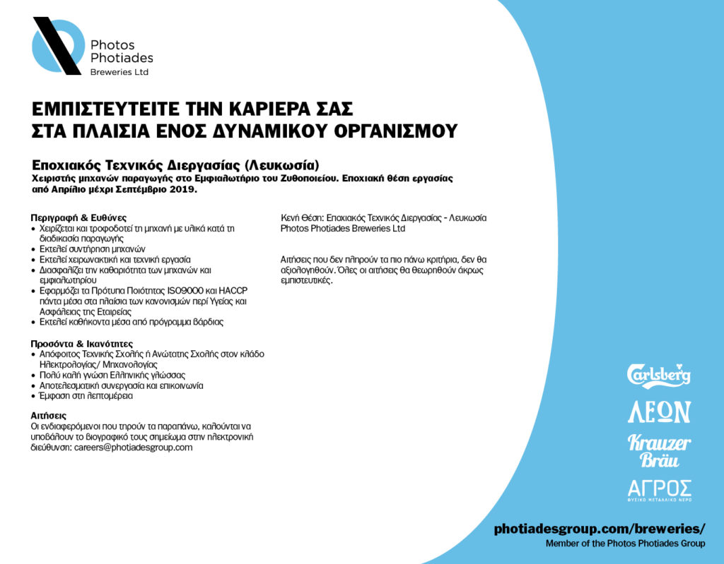By Photos Photiades Group 11/04/2019 Comments Off on Εποχιακος Τεχνικος Διεργασιας – Seasonal Process Engineer